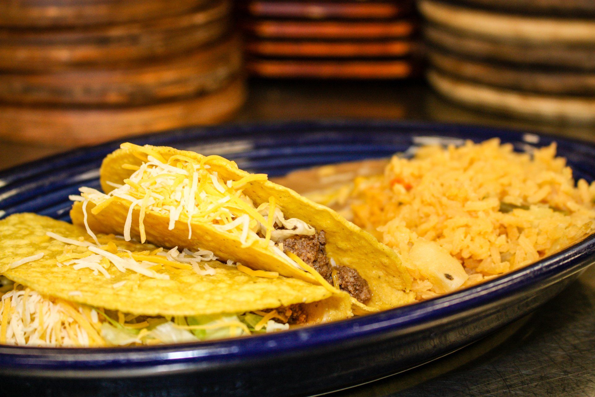 113.- 1 beef burrito, 1 beef taco, rice and beans - $14.95