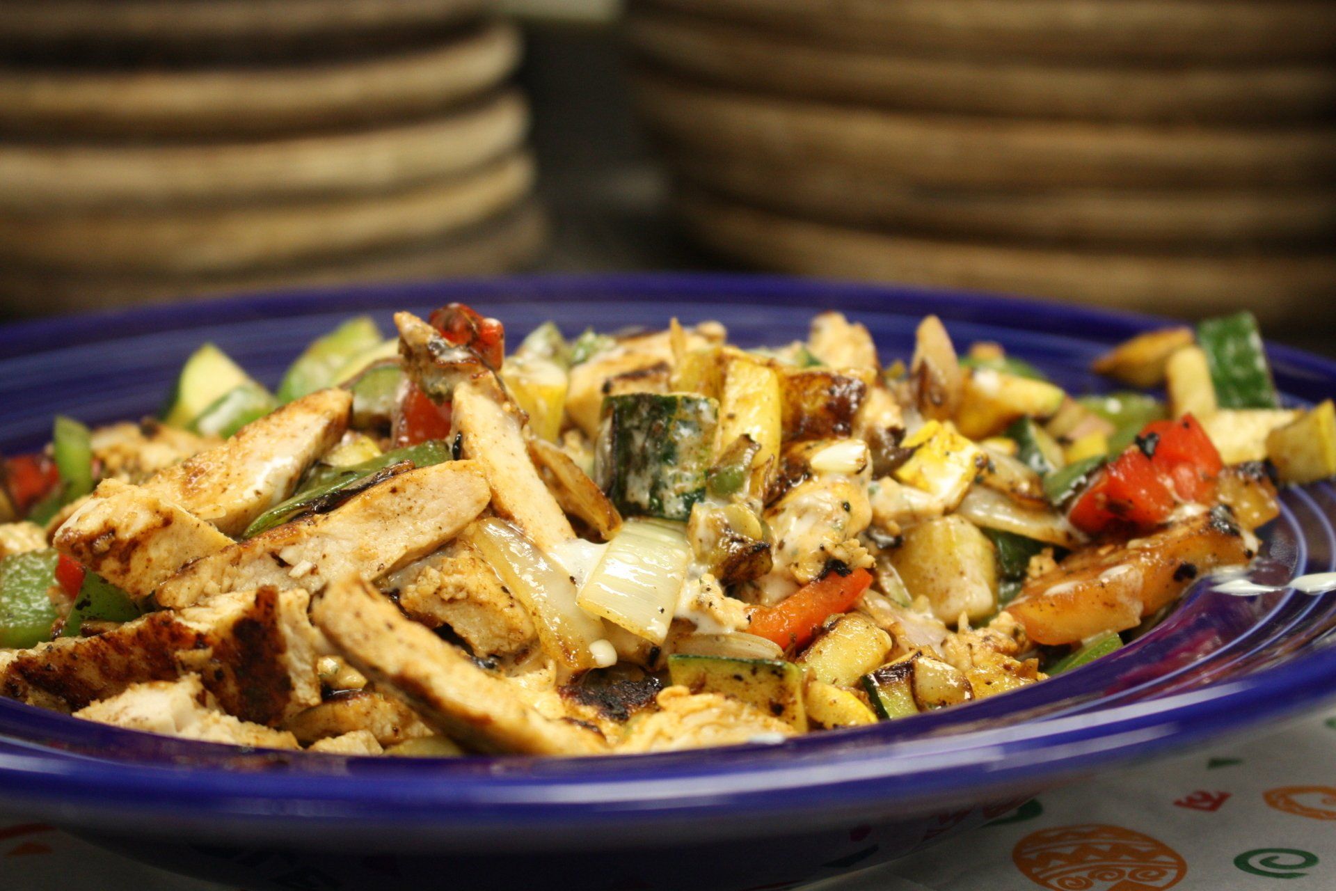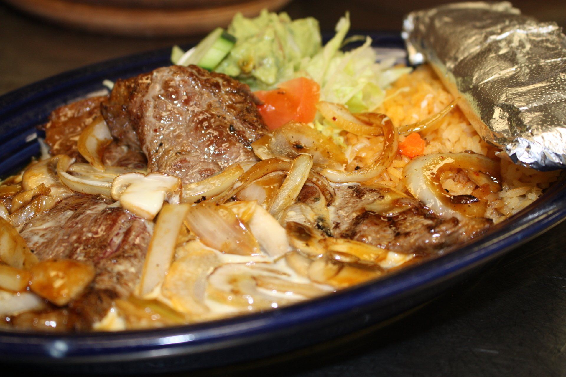 Seasoned beef or chicken on the grill, with a vegetable mix of zucchini, green and red bell peppers, onions and mushrooms, topped with our own salsa Yucateca and cheese sauce. Served with rice, mexican salad and tortillas.